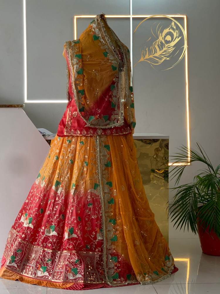 haded Crush silk fabric poshak with 4 mtr ghera .