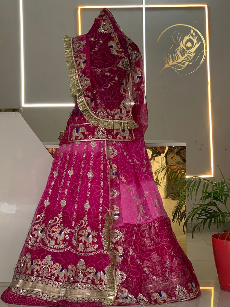 haded Crush silk fabric poshak with 4 mtr ghera .