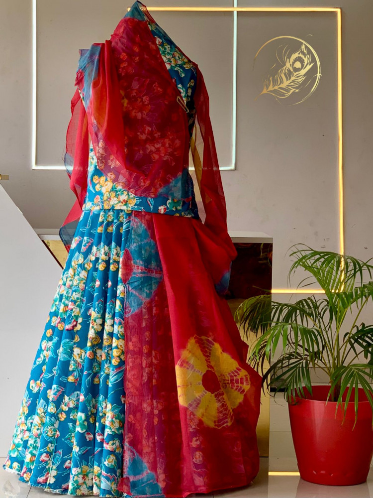 cotton chanderi suit with sarbati odhna